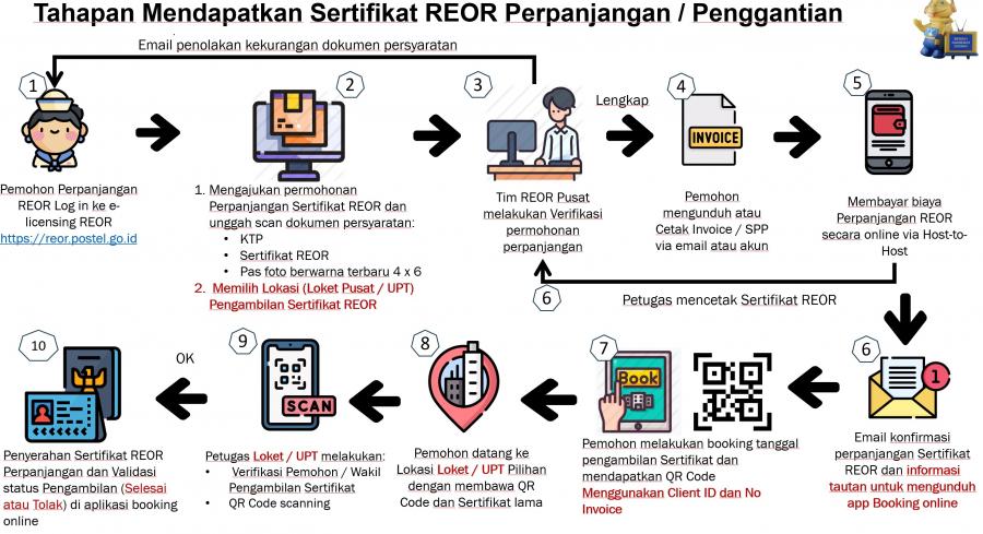 Berikutnya diadakan simulasi perpanjangan REOR dan pengambilan sertifikat dengan sistem booking online. Pada bagian ini, disampaikan pula standar operasional prosedur (SOP) atau ketentuan pengambilannya. Antara lain, pengambilan sertifikat wajib menunjukkan QR Code yang diterbitkan dari sistem booking online di http://antrian.postel.go.id/online/cek_invoice. QR Code berlaku dua Minggu (14 Hari) dari tanggal terbit.