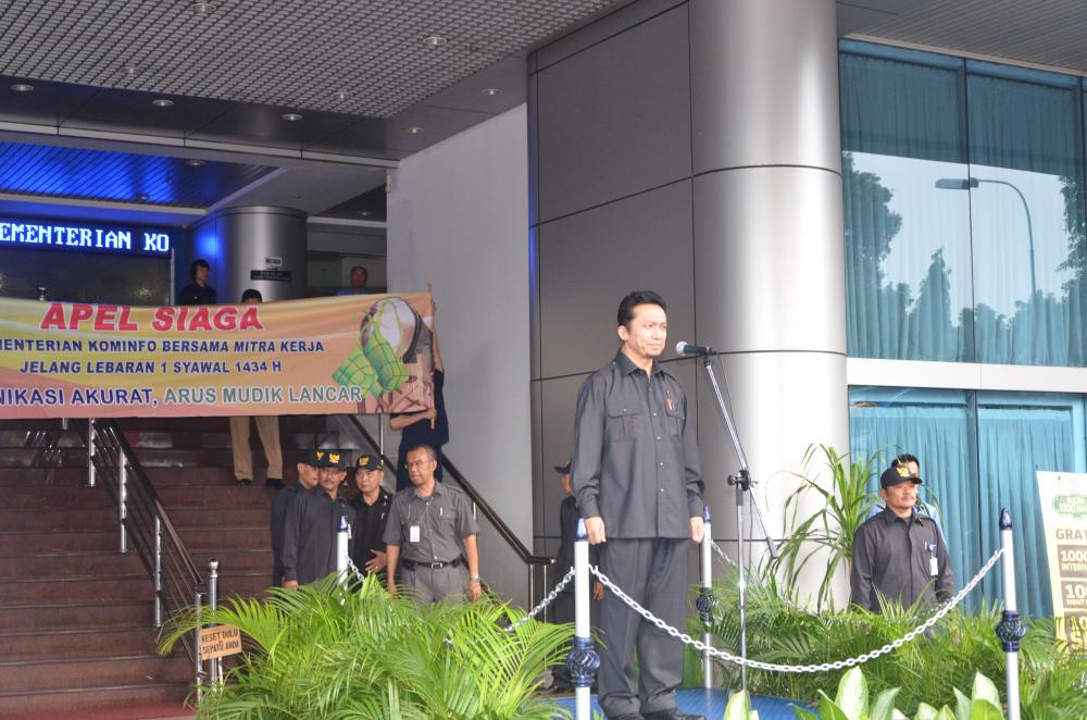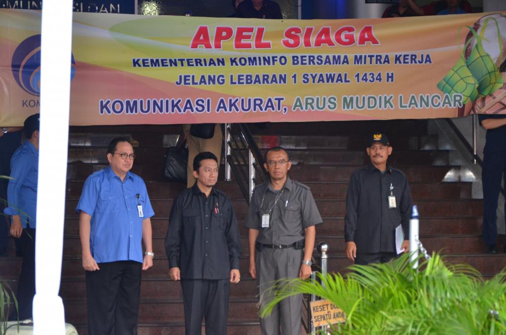Pada hari Senin tanggal 29 Juli 2013 bertempat di halaman depan kantor Kementerian Komunikasi dan Informatika Jl. Medan Merdeka Barat no. 9, Bapak Menteri Kominfo beserta jajarannya bersama mitra kerja terkait (penyelenggara pos dan penyelenggara telekomunikasi) melaksanakan apel siaga kesiapan menjelang lebaran tahun 2013.