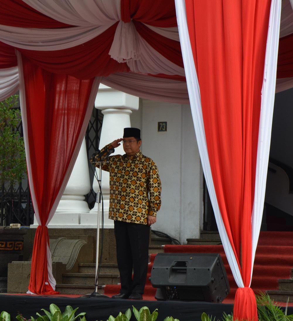 Menteri Komunikasi dan Informatika (Menkominfo), Rudiantara memimpin Upacara Peringatan Hari Bhakti Postel ke-70 di Tugu Pahlawan Pos Telegrap dan Telepon (PTT) yang terletak di halaman Kantor Pusat PT. Pos Indonesia, Bandung (27/9).