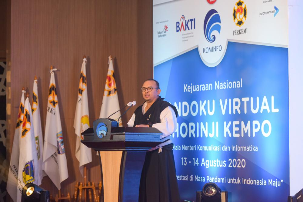 Jakarta (SDPPI) - Kejuaraan Nasional Tandoku Shorinji Kempo Piala Menteri Komunikasi dan Informatika Tahun 2020 memeriahkan rangkaian peringatan HUT ke-75 Kemerdekaan Republik Indonesia. Gelaran cabang olahraga yang pertama di Indonesia secara virtual itu berlangsung selama dua hari dari tanggal 13 s.d. 14 Agustus 2020. Kejuaraan yang diselenggarakan oleh Dojo Shorinji Kempo Kementerian Kominfo itu mengambil tema “Meraih Prestasi di Masa Pandemi untuk Indonesia Maju”.
