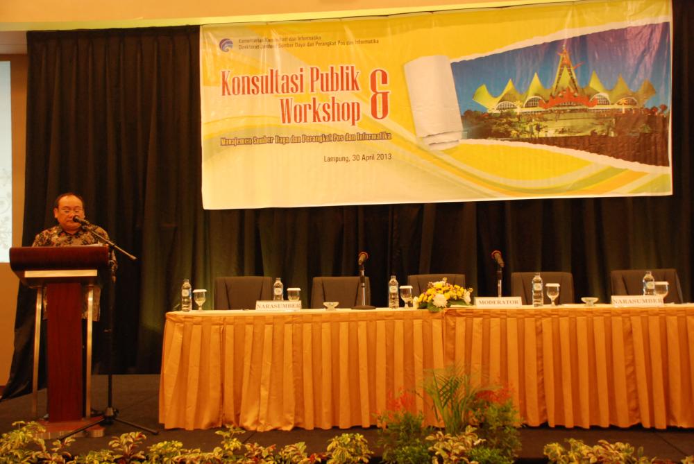 Bertempat di Hotel Emersia Resort, Jl. Wolter Monginsidi No.70, Bandar Lampung telah dilaksanakan Konsultasi Publik dan Workshop Manajemen Sumber Daya dan Perangkat pos dan Informatika, kegiatan yang dilaksanakan tanggal 29 April s/d 01 Mei 2013 dibuka oleh Bapak Rahmat Widayana, Direktur Oprasi Sumber Daya, Ditjen SDPPI, dan dihadiri oleh pengguna frekuensi radio daerah Bandar lampung, RAPI , PRSSNI, dan UPT Lampung