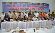 Medan, 29 Oktober 2013, Kunjungan Kerja Komisi I DPR RI ke Medan Sumatera Utara yang dilaksanakan pada hari Selasa tanggal 29 Oktober 2013 pukul 09.00 WIB, bertempat di LPP TVRI Sumatera Utara, dihadiri oleh 17 Orang Anggota Komisi I beserta Sekretariat, Pemerintah Provinsi Sumatera Utara, Kepala LPP TVRI Sumatera Utara, Kepala LPP RRI Sumatera Utara, Kepala Balai Monitor Kelas II Medan, perwakilan dari ; PT. Telkom Sumatera Utara, PT. Indosat, PT. POS Indonesia Sumatera Utara, KPID Sumatera Utara dan para staf undangan terkait.