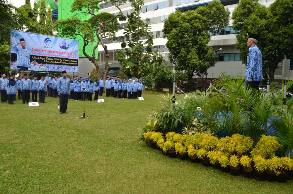 Pelaksanaan upacara HUT KORPRI dipimpin oleh Bapak Suprawoto (Staf Ahli Menteri Komunikasi dan Informatika, Bidang Sosial Ekonomi dan Kebudayaan Kominfo) yang dilaksanakan di Kementerian Komunikasi dan Informatika Jl. Medan Merdeka Barat No 9, Jakarta Pusatberjalan dengan tertib dan khidmat.Â