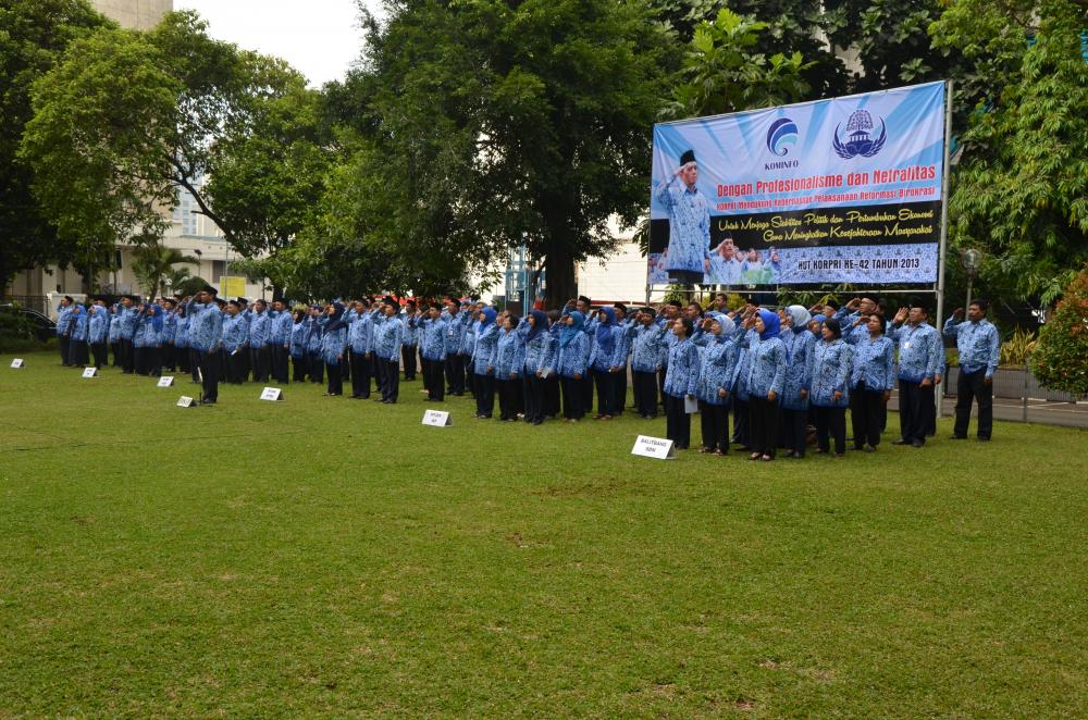 Jakarta, Upacara HUT KORPRI Ke-42 yang mengambil thema “Dengan Profesionalisme dan Netralitas, KORPRI Mendukung Keberhasilan Pelaksanaan Reformasi Birokrasi untuk Menjaga Stabilitas Politik dan Pertumbuhan Ekonomi Guna Meningkatkan Kesejahteraan Masyarakatâ€.
